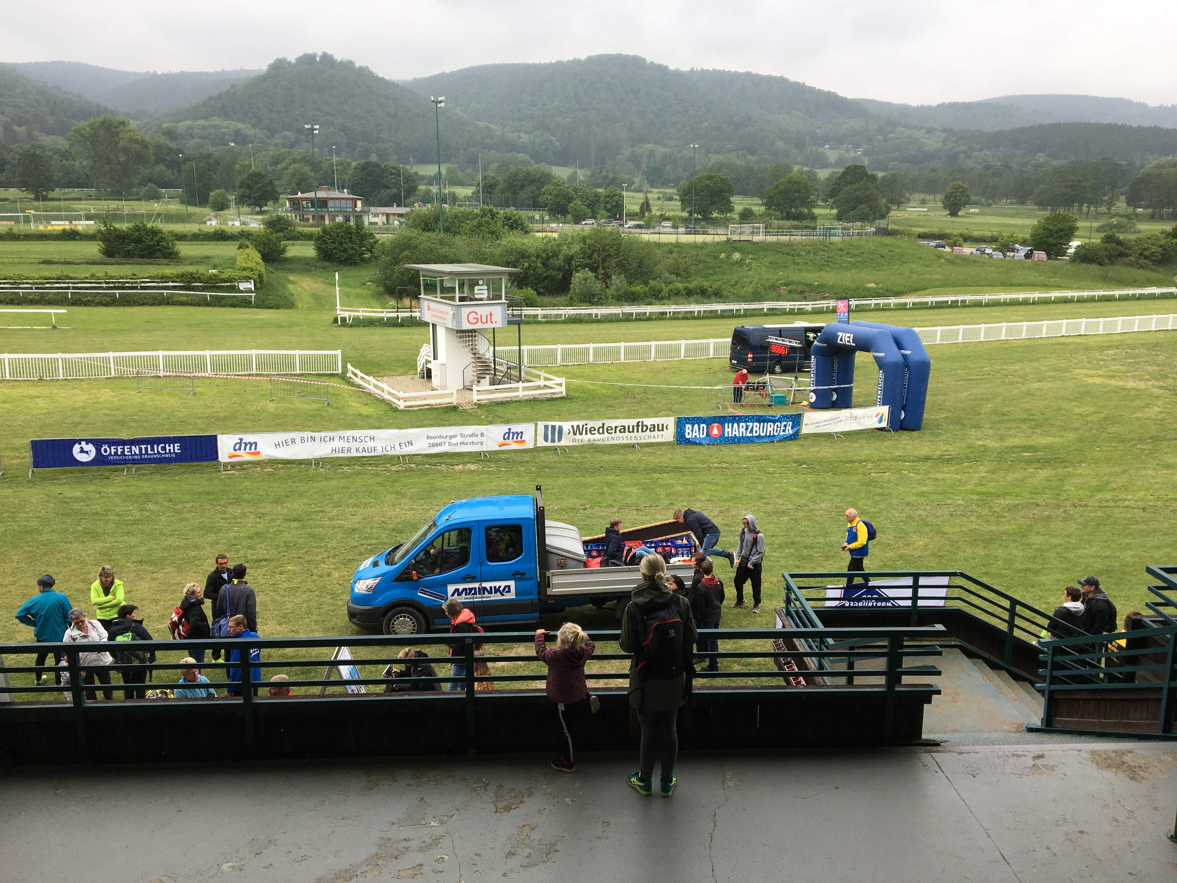 Letzten Samstag vor Pfingsten hab ich mich in der früh (02:15 Uhr) nach Bad Harzburg (im Harz) zum 12. Bergmarathon aufgemacht. Unterwegs konnte ich nochmal 2 Stunden schlafen und dann hiess es Punkt 10 Uhr los auf die Strecke mit ca. 90 weiteren Marathoni's und deutlich mehr Halbe "Hähnchen". Also ein kleines familäres Event mit noch weiteren kürzeren Läufchen, auch für Kinder. Das Besondere: Start und Ziel ist auf der Bad Harzburger Pferderennbahn. Wirklich sehr idyllisch.