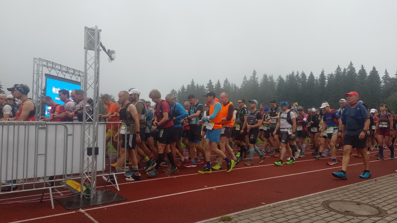 Auf einigen Abschnitten führte der Trail über technisch abenteuerliche MTB Strecken und mit über 2200 Höhenmetern immer wieder hoch und runter , etliche Kilometer entlang des Grenzpfades zwischen Tschechien und Deutschland bis hinauf zum Fichtelberg und wieder auf einer matschigen Wiese bergabwärts, so daß auch etliche Läufer ihre Schuhe wieder im Schlamm suchen mußten. Permanent musste man hochkonzentriert laufen und sprichwörtlich ging's stets über Stock und Stein.
